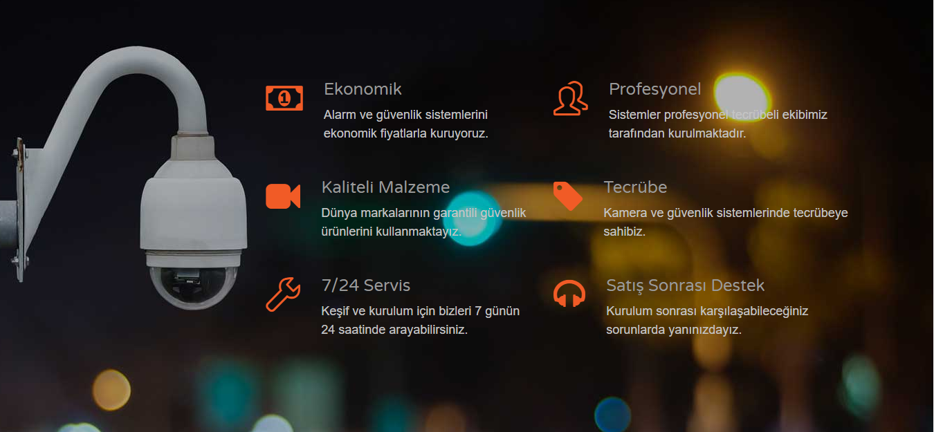 Güvenlik kamerası, uygulama yapılacak merkezin ihtiyaçlarını karşılayabilecek şekilde seçilmesi, muhtemel risklerin en fazla gerçekleşebileceği noktaların belirlenmesi ve kamera sistemlerinin analizler çerçevesinde yapılacak değerlendirme sonrasında yerleştirilmesi sağlanmaktadır. Böylece kamera sistemlerinden elde edilecek verim daha fazla gerçekleşmektedir. Kamera güvenlik düzeyinizin önemli bir parçası olup, ev ve iş yerlerinde kullanabileceğiniz güvenlik kamerası ürünlerinden HD den 4K çözünürlüklerde görüntü elde edebiilirsiniz. Kamera güvenlik sistemleri uygulamalarında profesyonel sistemler ile çözümler üretiyoruz.